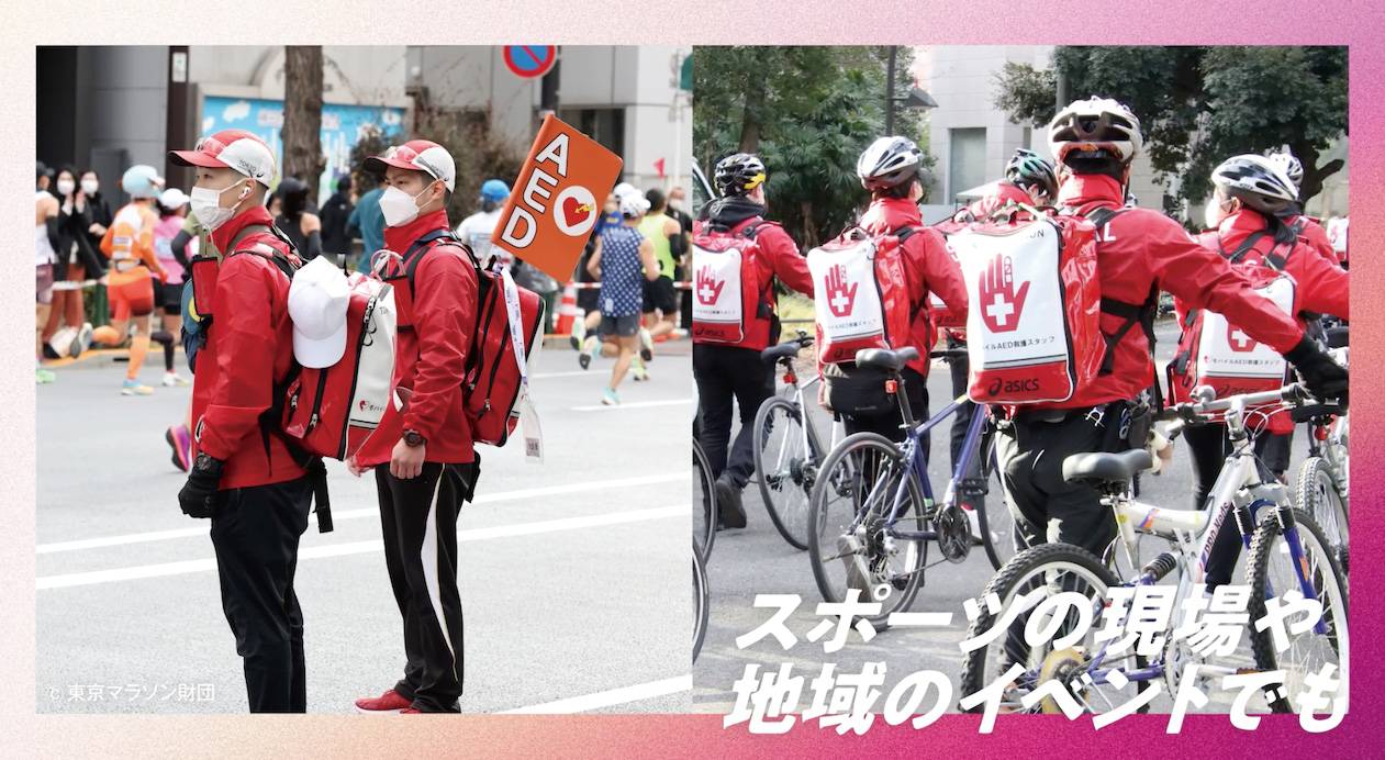 スポーツ会場のスタジアムビジョンや各種スポーツイベント、AED推進フォーラムで放映するムービーとリーフレットを制作しました。日常生活時にくらべて、スポーツ時に心停止が発生する確率は17倍にものぼります。また、大観衆のスタジアムなどでは、人混みや声援のために救命が遅れる、救助の声が届かないという問題があります。そこで、日本AED財団による緊急時のガイドライン作成や救命アプリの開発、国士舘大学によるスポーツ会場での救命活動など、社会全体がチームとなった、さまざまな取り組みがなされています。観戦する人もプレイする人も誰もが安心してスポーツを楽しむために、AEDによる救命活動の重要性を伝える動画&リーフレットです。