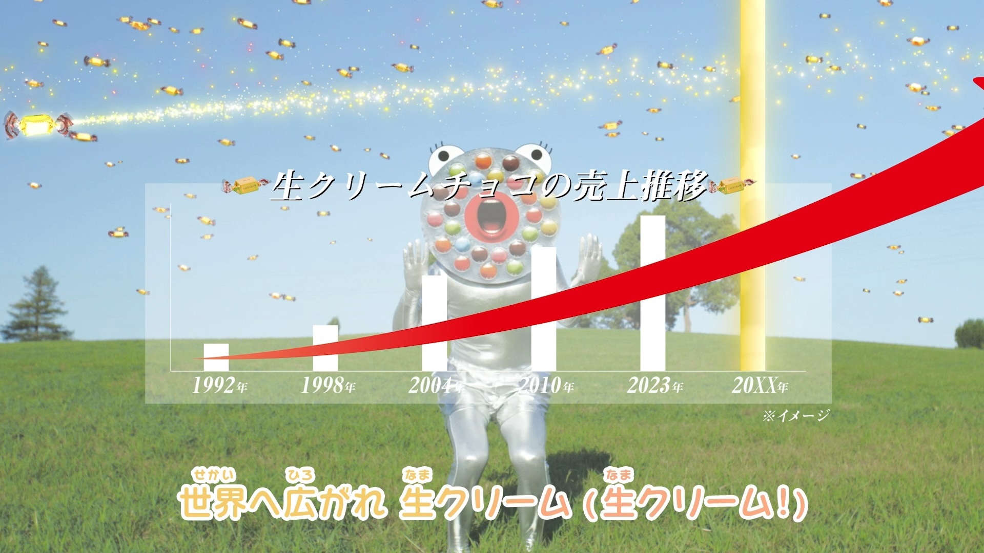 毎年恒例、ニチアサ(プリキュア・仮面ライダー・レンジャー)の枠で流れるテレビCMで、子どもたちはもちろん、Xに生息する”ニチアサ民”がいかに盛り上がってくれるか。 めがねチョコをかけると「チョコチョコ様」というキャラクターが見える、現れるという企画にしました。クセのある歌と、子どもが真似したくなるシンプルなダンスでフルタらしい世界観をつくりました。