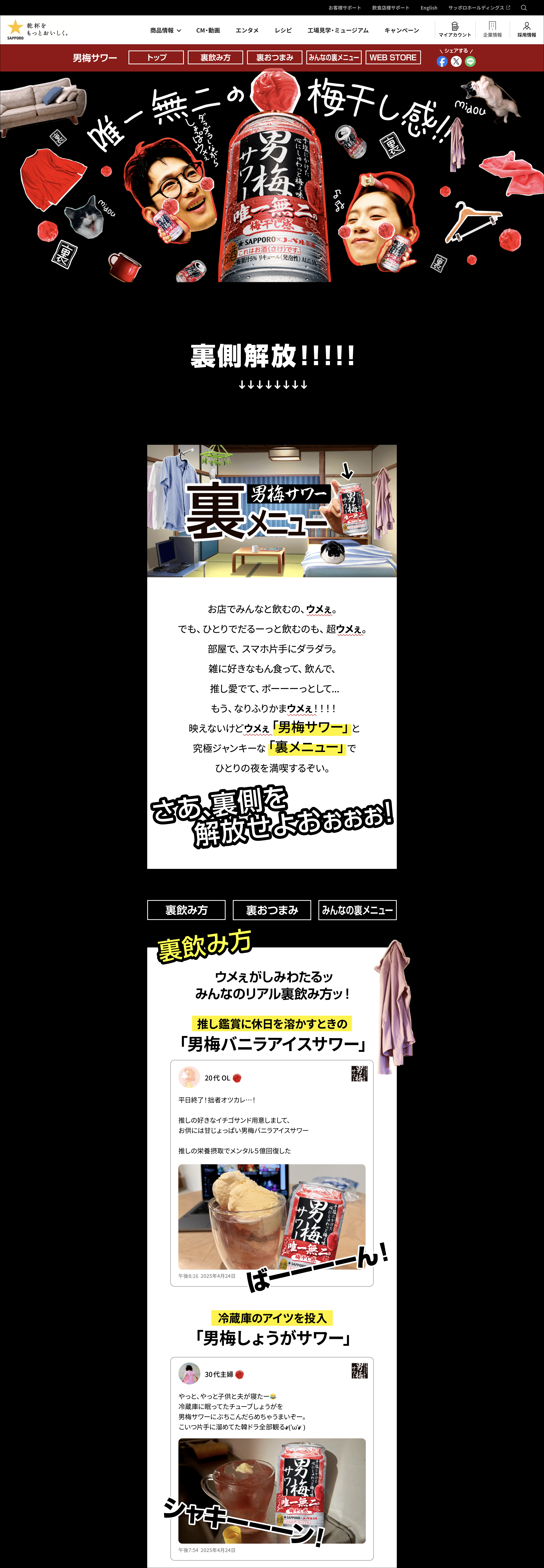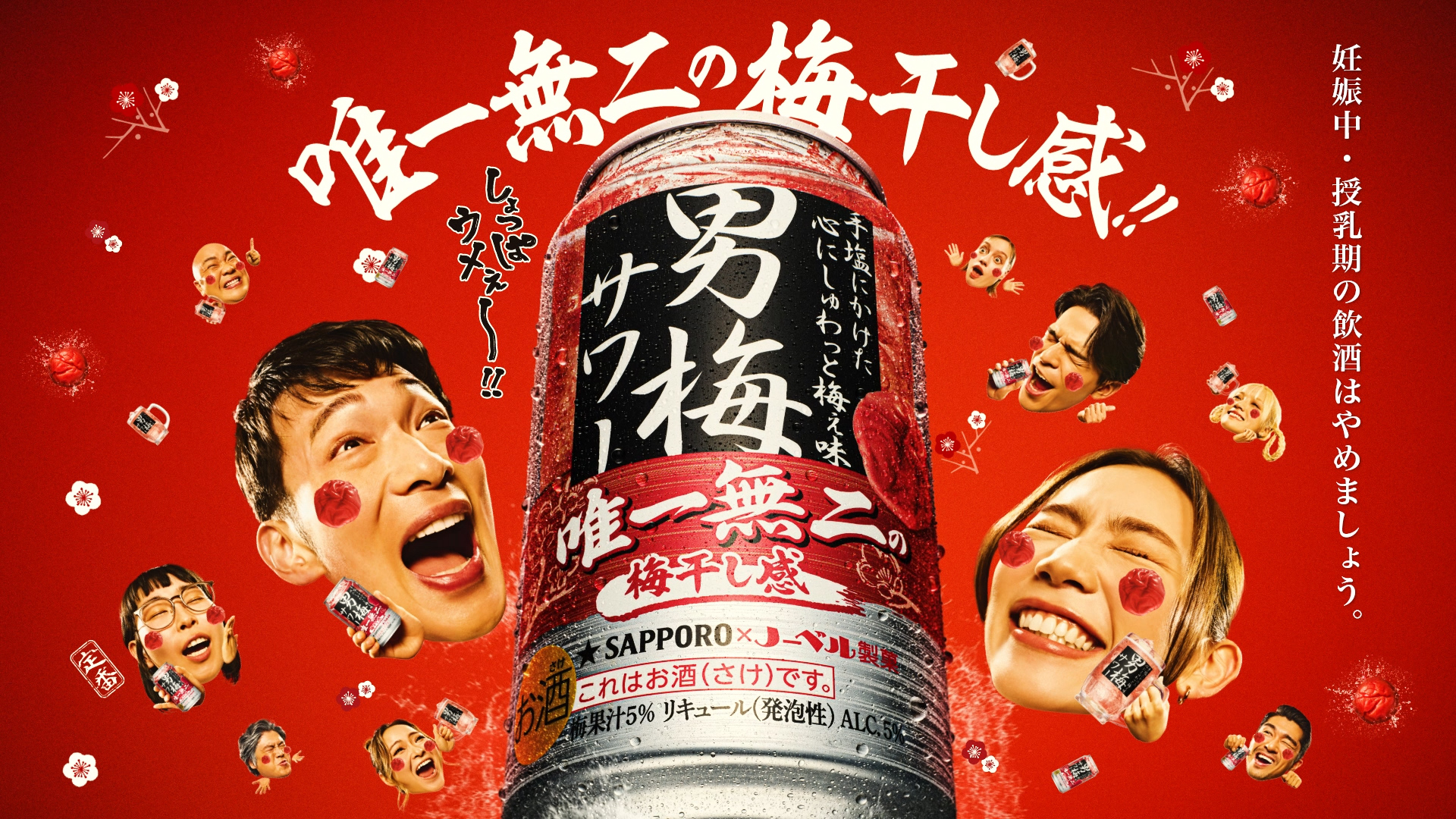 12年目の男梅サワー。さらなる新規獲得を目的に、今まで訴求してきた「味」に加えそこから生まれる「気分」を価値として伝えるために、「しょっぱウメぇ〜!」をコンセプトに。男梅サワーならではの梅干し味から生まれる、元気でかざらない解放感を表現しました。しょっぱウメぇ〜!で己をシュワッと解き放てぇ!(裏サイトも楽しめぇ!)